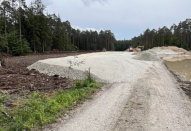 Bei den WEA 5, 6 und 7 sind die Montage- und Kranstellflächen aufgeschottert