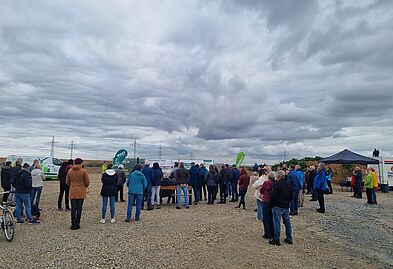 Zu Baubeginn fand am Freitag, 17.10.2025, der Spatenstich im Windpark Theilheim statt