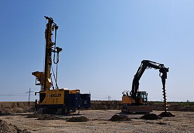 Ende Oktober – Anfang November werden bei den Fundamentflächen die Arbeitsebenen der Baugrundverbesserung ausgebaut und die Schotterschicht für die Fundamente eingebaut.