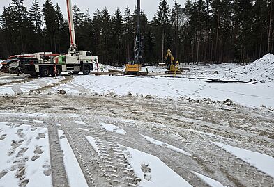 Bei WEA 3 läuft die Baugrundverbesserung. Die Fertigstellung hat sich witterungsbedingt erneut verschoben und soll voraussichtlich bis Mitte kommende Woche abgeschlossen sein.