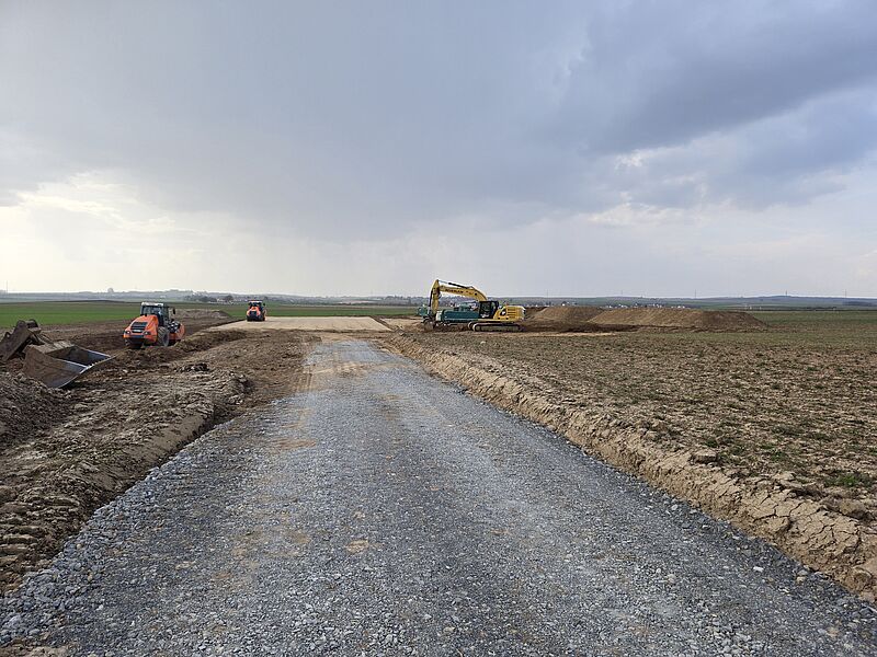 Bei WEA 1 und 4 sind die Archäologen jetzt parallel zugange. Sie kommen jetzt gut voran und werden rechtzeitig fertig.