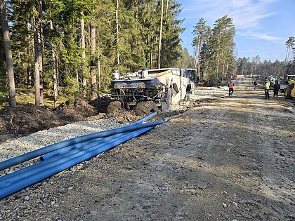 Die Zuwegungen wurden stabilisiert und Anfang kommende Woche nochmals aufgeschottert. Die restliche Zuwegung ist komplett freigeschnitten.